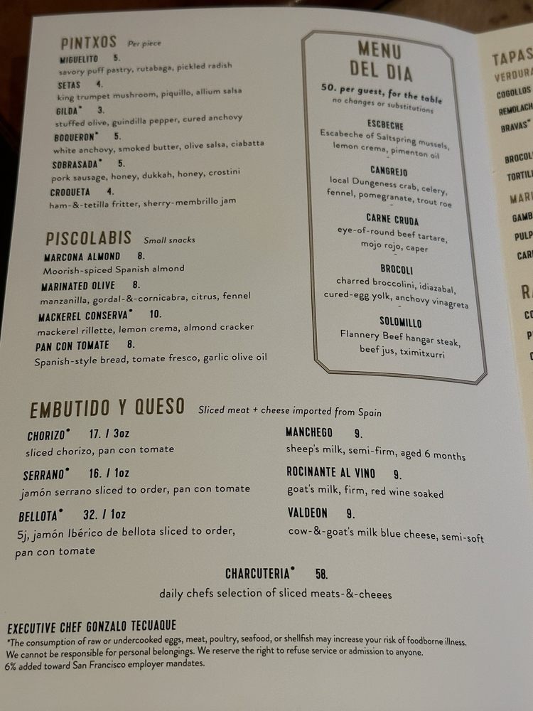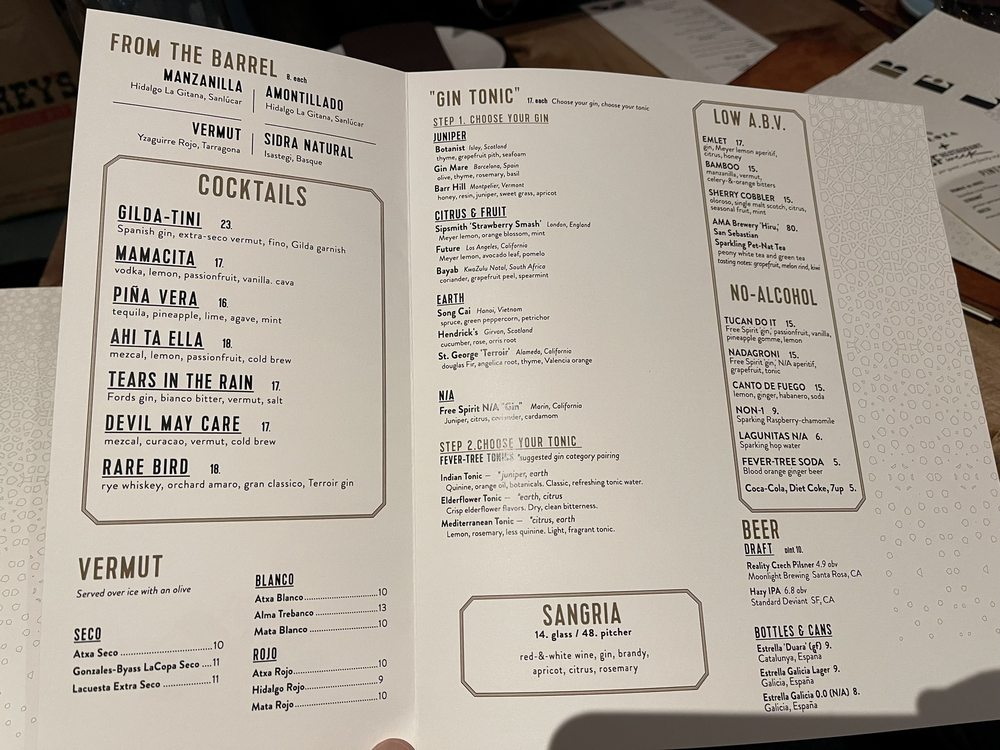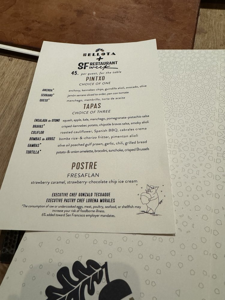 Bellota, a Spanish tapas bar in San Francisco, offers a trendy and vibrant dining experience. Located at 888 Brannan St, Bellota provides a wide range of amenities like wheelchair accessibility, happy hour specials, and outdoor seating. The menu showcases a variety of Spanish dishes, with highlights such as the Pulpo gallega, Jamon ibérico, and flavorful paellas. Customer favorites include the tender braised pork cheek and the olive oil poached gulf prawns. The ambiance is festive, and the service is attentive, making it a great spot for groups or a romantic date night. Overall, Bellota impresses with its authentic Spanish flavors and modern twist on traditional dishes. Don't miss out on their churros for a sweet ending to your meal.
